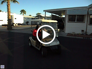 Barry and Darcel loaned us their golf cart for Dagmar's mother Ruth to use. Ruth is still recovering from knee surgery and this makes it a lot easier for her to get around in the park. Boy, does she love this thing!!